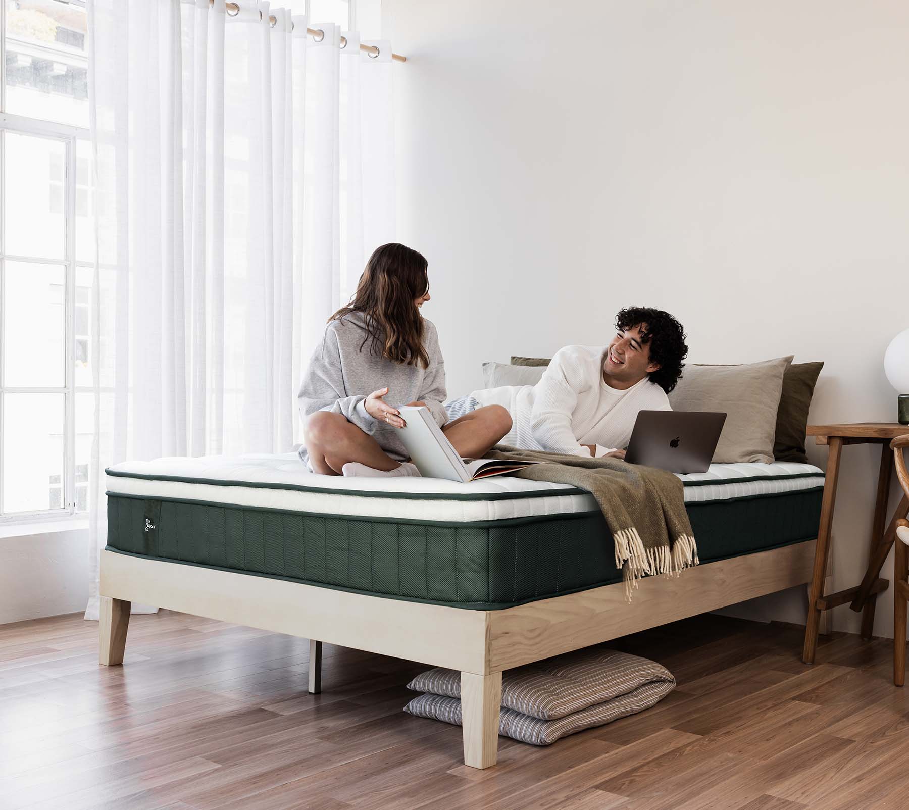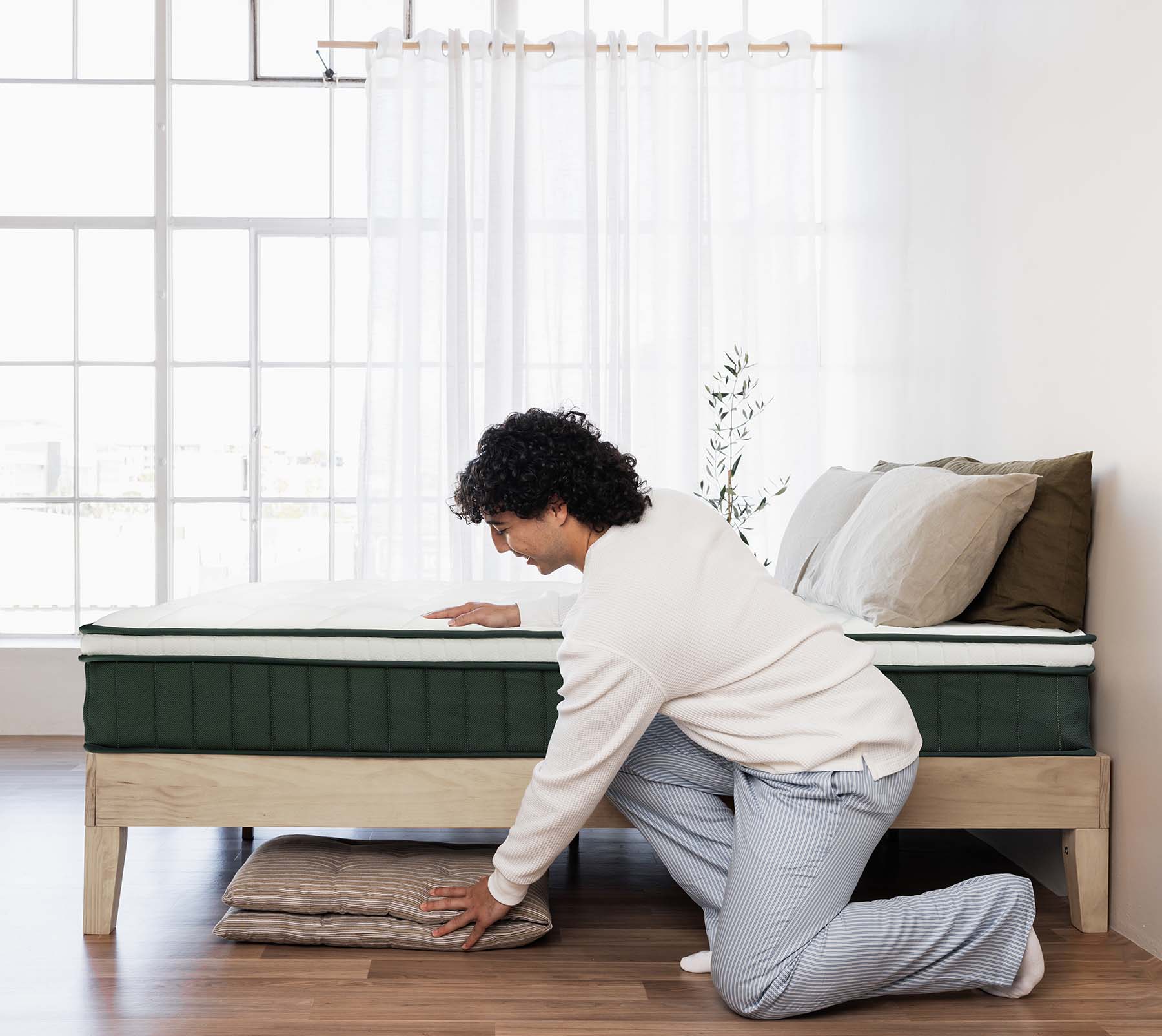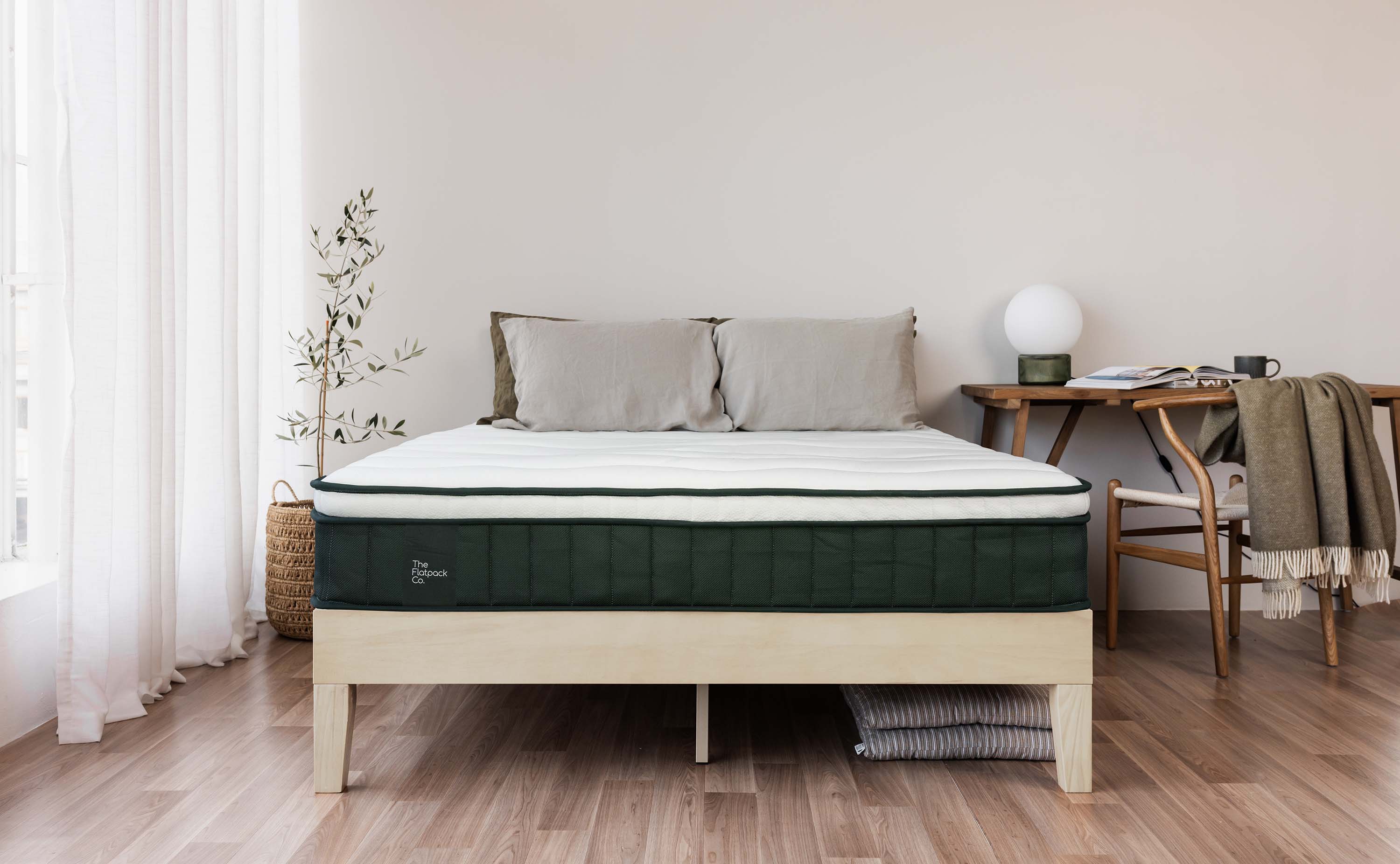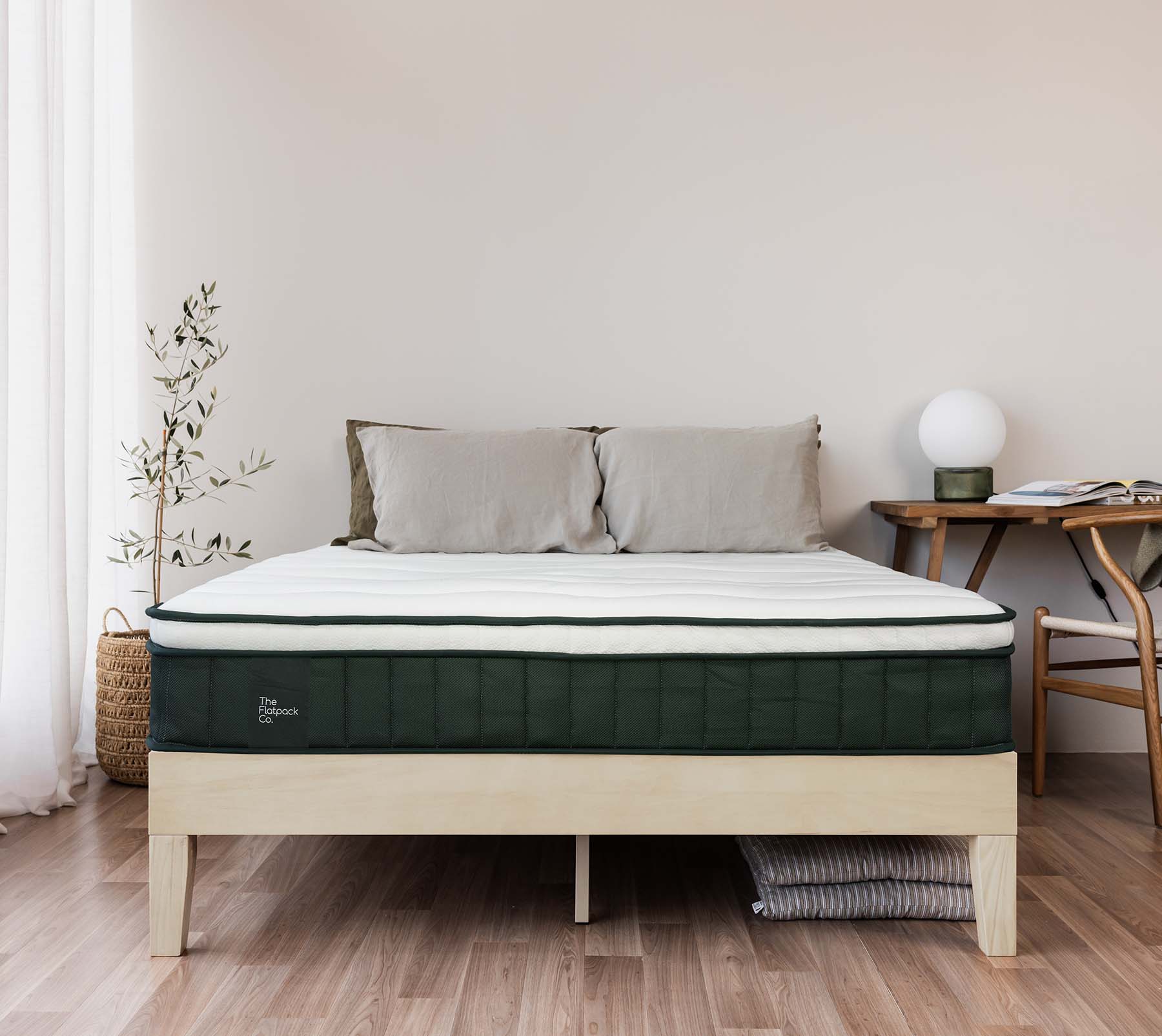 The mattress + bed frame arrives at your door conveniently in a box! Our innovative packaging is significantly smaller than traditional mattresses, merging vacuum packing and a rolled design. This allows for easy movement upstairs, round tricky corners or through smaller door frames.